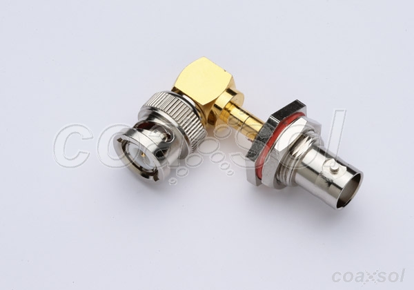BNC Female Bulkhead to BNC Male Right Angle Adapter