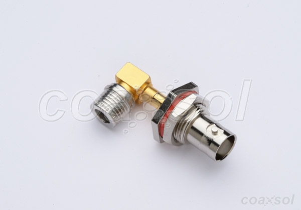 BNC Female Bulkhead to QMA Male Right Angle Adapter