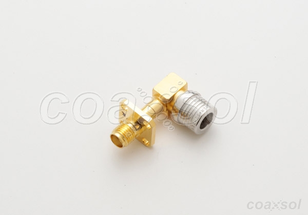 QMA Male Right Angle to SMA Female 4 Hole Panel Mount Adapter