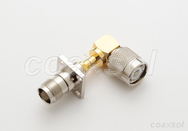 TNC Female 4 Hole Panel Mount to TNC Male Right Angle Adapter