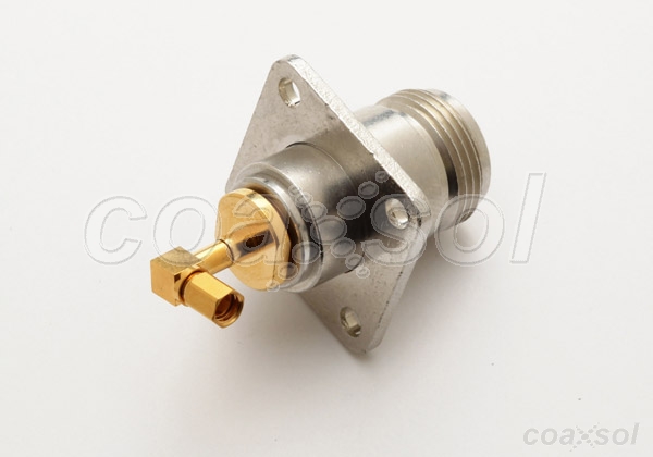 N Female 4 Hole Panel Mount to SSMC Plug Right Angle Adapter