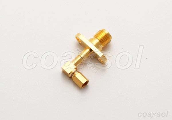 SMA Female 2 Hole Panel Mount to SSMC Plug Right Angle Adapter