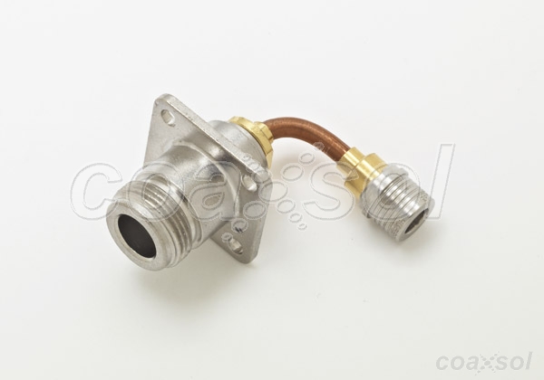 N Female 4 Hole Panel Mount to QMA Male Adapter